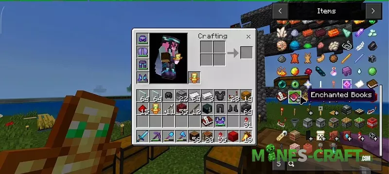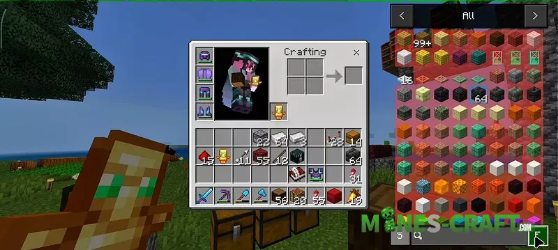 Bedrock JEI is a tiny texture pack that transforms the recipe book and inventory window to look and function simillarly to the popular JEI mod from the Java version. However, it’s not a mod, it doesnt add new items, but thanks to the redesigned GUI, crafting recipe navigation becomes easier, more enjoyable and naturally faster.