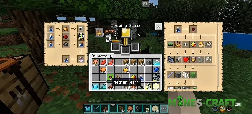 Crafting tables, furnaces, smithing tables, and even the brewing stand have upgraded screens. My favorite is the brewing guide you just follow the arrows and end up with the potion you want without checking a wiki. Villagers unlock all trades right away and you can quick trade items in seconds.