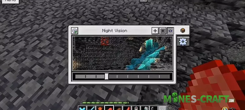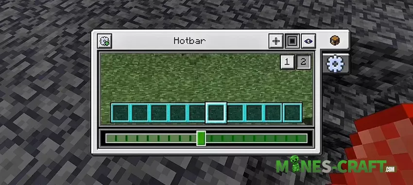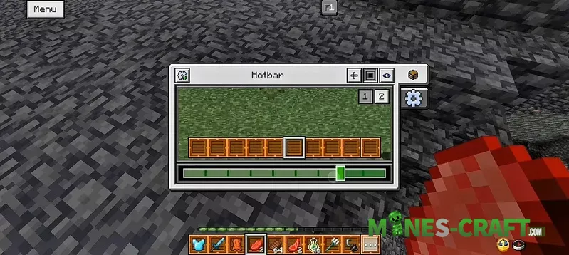 You get eight crosshairs, and yes, one can cycle through RGB colors. There are ten hotbar styles and twenty different highlight looks. The ore visualizer is neat too – it hints at the Y levels where ores usually spawn. It won’t hand you free diamonds, but it makes mining less of a guess.