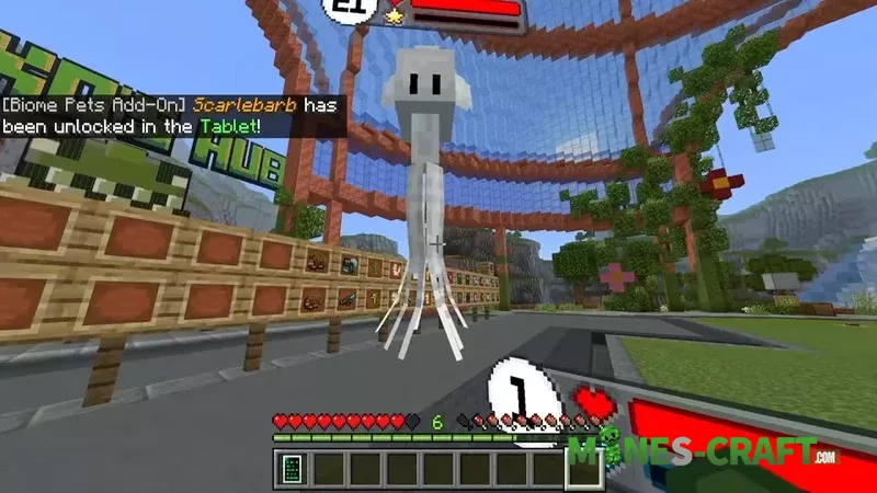 After the update, players recieve a Biome Pets tablet, where they can view pets, add-on data, settings and an overview of changes. The level of each pet is now displayed above its head. The tablet shows where the pet lives, how rare it is, what abilities it has and what it evolves into. Locked forms are unlocked only after evolution.
