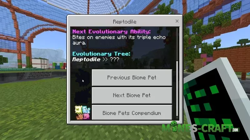 All biome pet forms are now unique mobs and no longer share the same names. Previously, even evolved forms had the same names as their base forms, but now each stage has its own identity. For example, the ecodile now starts as a repadile and only evolves later. All evolutions must be unlocked separately by exploring different biomes, including the Nether and the End.