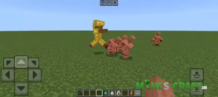Each of its movements is accompanied by a metallic sound, which looks especially cool when a crowd of copper golems attacks a zombie.