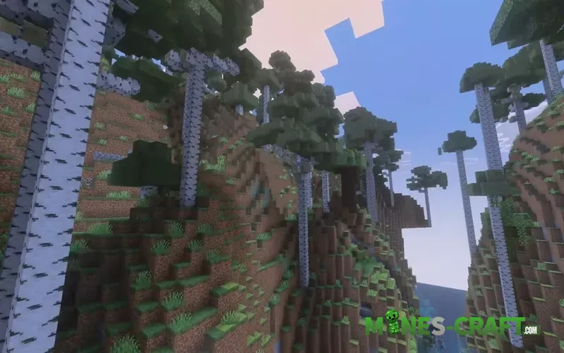 Start a new world with Bloomrock Pack BE and explore. The pack keeps vanilla biomes, so seeds and mob behavior remain unchanged. Achievements are disabled. Expect huge wood drops from giant trees and better views for bases or screenshots.