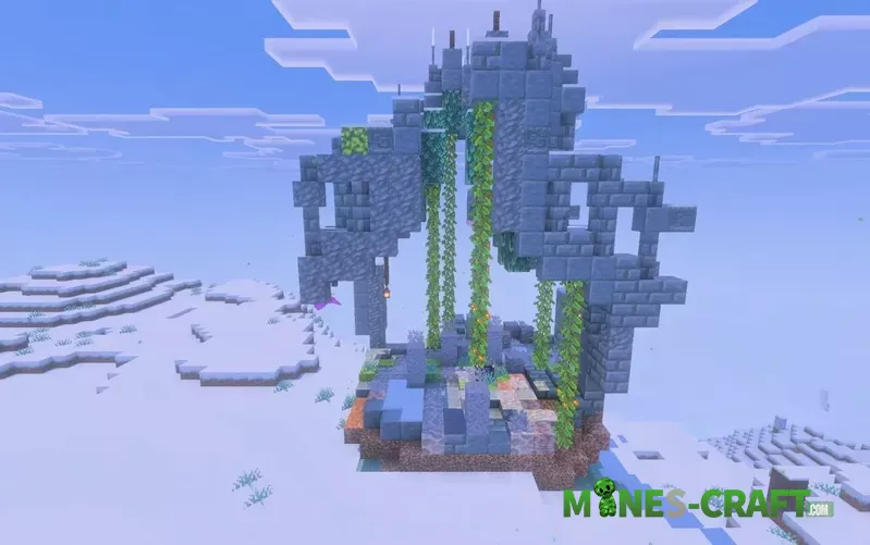 - Structures such as mossy arches, ruined shrines, and small houses. Some locations even hide spawners for quick fights.