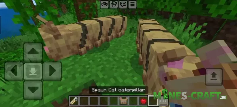 Caterpillar Cat is a new unusual creature that looks like a mixture of a caterpillar and a kitten. It has a long segmented body, small ears, and large blue eyes, which make it seem friendly despite its size. It moves on land, avoids water, and behaves more like a pet than a wild mob.