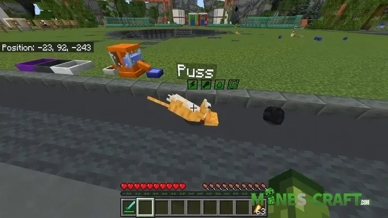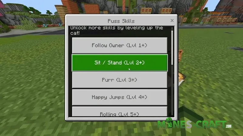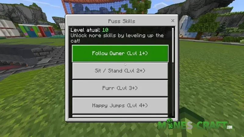With the CATS Add On, you can care for and raise cats, but they’re nothing like the vanilla ones. You can find them in the wild and once you’ve tamed them, you can name, play with them, and level them up. Once tamed icons will appear above the cats’ heads showing what they need to stay happy. So for 310 MineCoins, this add on is yours download it via the link below the description.