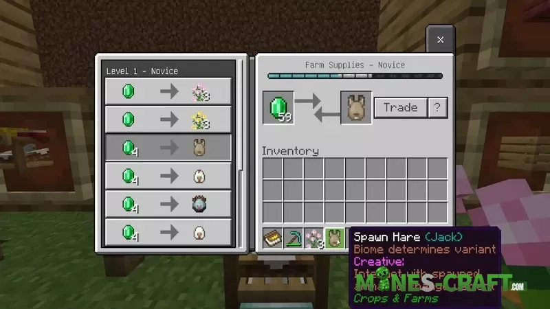 Now there are Harvest Traders. With them, you can buy and sell animals, plants, food, and items for emeralds. As you trade, new categories unlock. There are two types of trading tables: Supply and Trader.