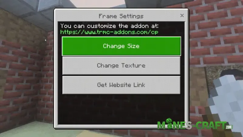 Upload an image through your browser, customize it, and place it in the game world. In-game, use the Frame Settings menu to resize the canvas or pick a specific texture from the list of uploaded files with just a few clicks.