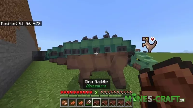 In Dinosaurs 4.0, the saddling mechanics have been completely revised. Special dino saddles are a thing of the past, and now there are regular vanilla saddles for all creatures. Another useful detail is that the saddle can now be removed from a dinosaur with regular scissors, just like with other mobs in the game, its a small but handy change.