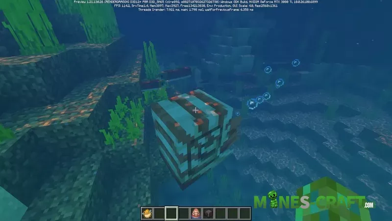 Camel corpses now drop rotten flesh, and a new mob, the coral zombie nautilus, has appeared. Its model is decorated with corals and looks both disgusting and impressive at the same time. It only spawns in warm oceans and, like regular nautiluses, can be tamed with a pufferfish.
