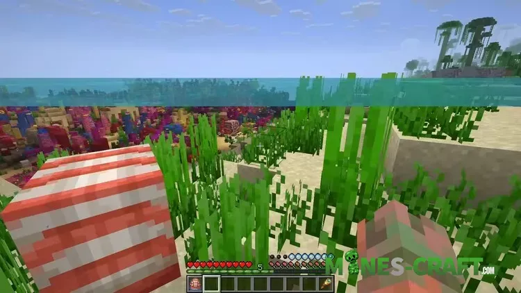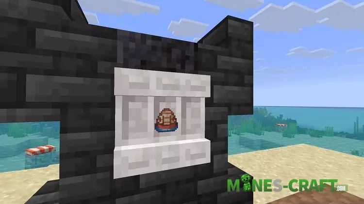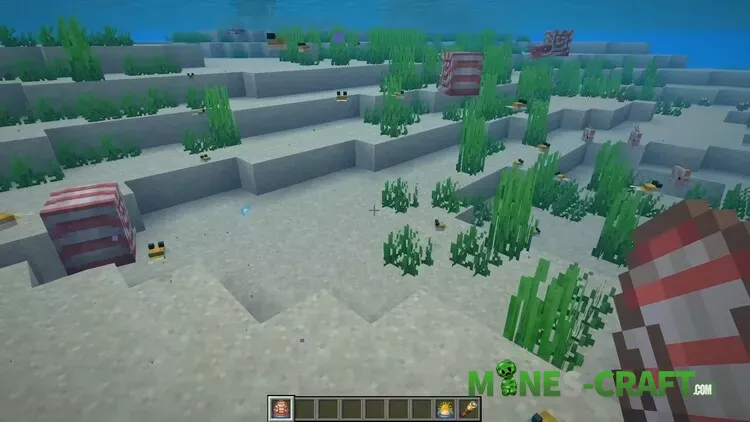 Let’s start with the new mob – the Nautilus. Its spawn egg looks cute, with a little water at the bottom – a hint that the creature is aquatic. Nautilus live in all types of oceans, from warm to cold. The mob itself is bright, beautiful, and moves its tentacles while swimming. It is neutral and does not attack first, but if attacked, it will fight back. The damage is not too great, but it can be a problem of the ocean.