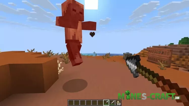 An interesting feature is the limited range of close combat. If you stand too close, the strike will not connect. However, the range of a normal strike exceeds that of a sword by almost two blocks. There is a chance to hit several opponents at once.