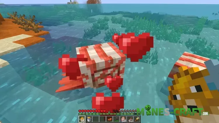 However, these creatures can be tamed and bred using pufferfish-both items and buckets of fish. After breeding, a small Nautilus appears, similar to a real shell. A tamed one can be saddled by putting on a saddle. When riding, the “Nautilus Breath” effect is activated, which stops oxygen consumption underwater.