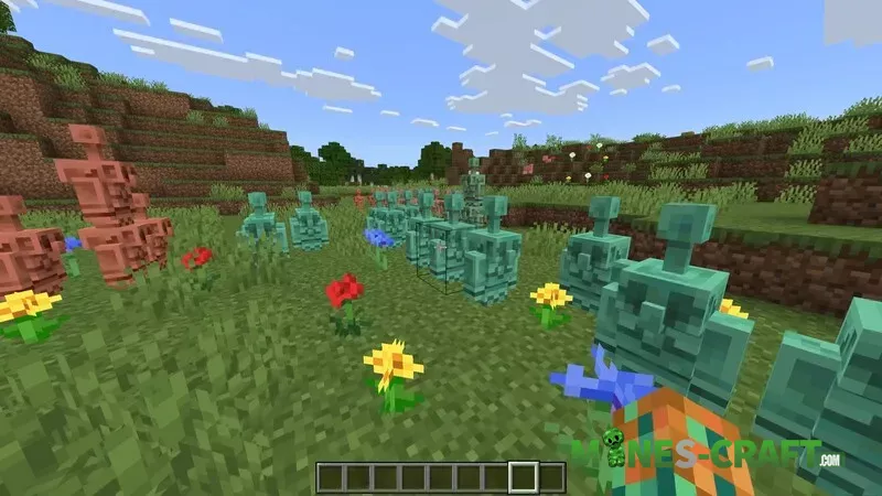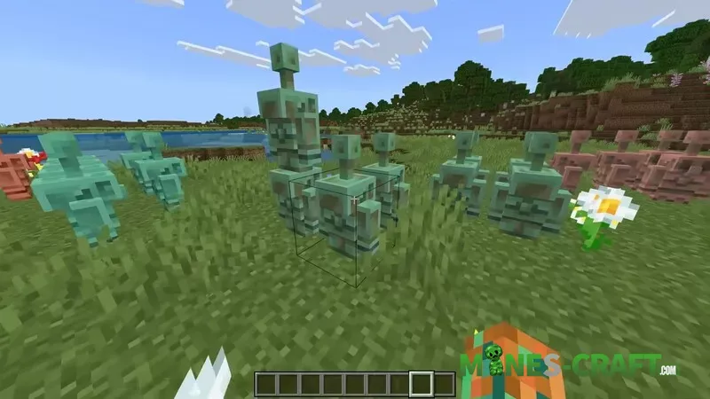 Now let’s talk about how to get a copper cloak. It looks great with armor and goes especially well with elytras. The first way is to go to the Bedrock edition of Minecraft and place several copper golems. The cape is not issued immediately, but within two weeks, until October 31.
