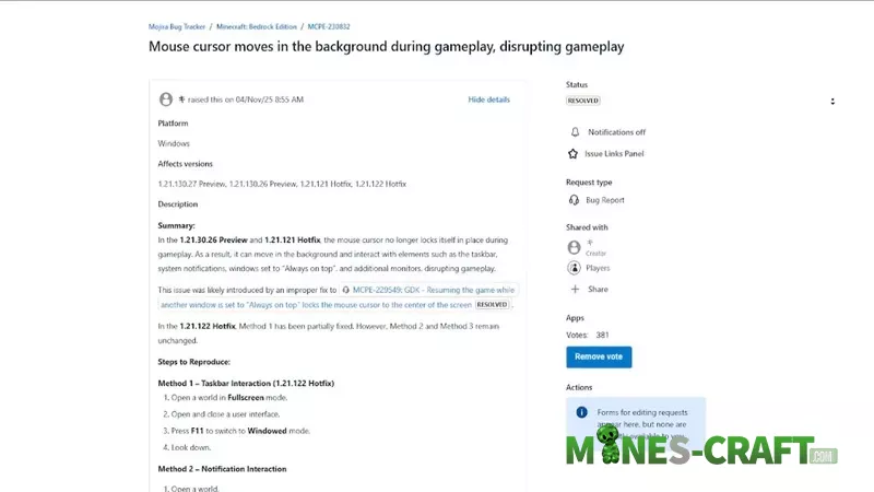 What bothers a lot of players is that you can’t cancel updates in Bedrock, especially on Windows, where it is forcibly installed. MCBE has had great success this year, but the latest update has ruined everything. We hope that everything will stabilized before 2026. Fortunately, the current update has become safer, although there are still minor issues with cursor jumps, but the situation has improved significantly. If you find new bugs, please continue to report them.