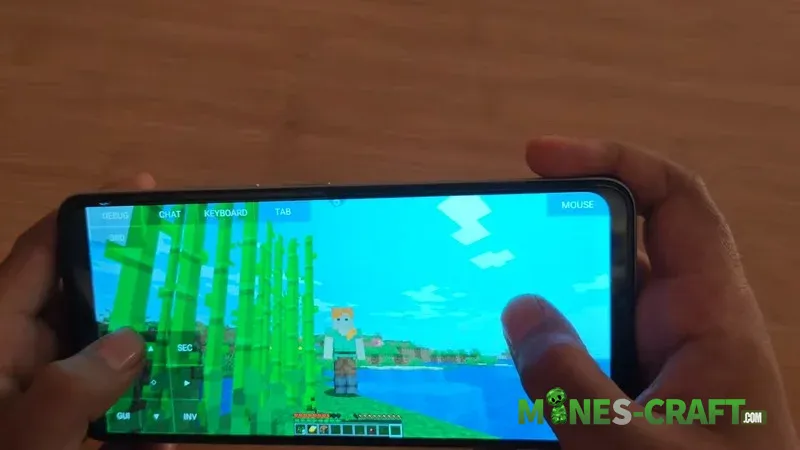 The MojoLauncher main menu includes a wiki, Discord and control settings. By the way, the controls are fully customizable, you can configure the virtual buttons to your liking so that playing feels almost like using a mouse and keyboard