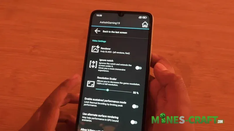 Renderer selection: this is critical for performance. You can choose Holy GL4ES for speed on any version, or Zink (Vulkan) for average performance. For versions 1.17 and above, LTW mode (OpenGL ES 3) is available. There’s also a handy feature to ignore the notch on the screen, so the game interface isnt blocked by the smartphone’s camera