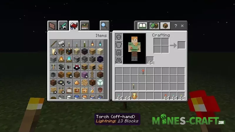 - Dynamic Item Lighting: 90+ glowing items, including torches, lanterns, and sea pickles, will illuminate your surroundings while in your hand or even in another player’s grasp