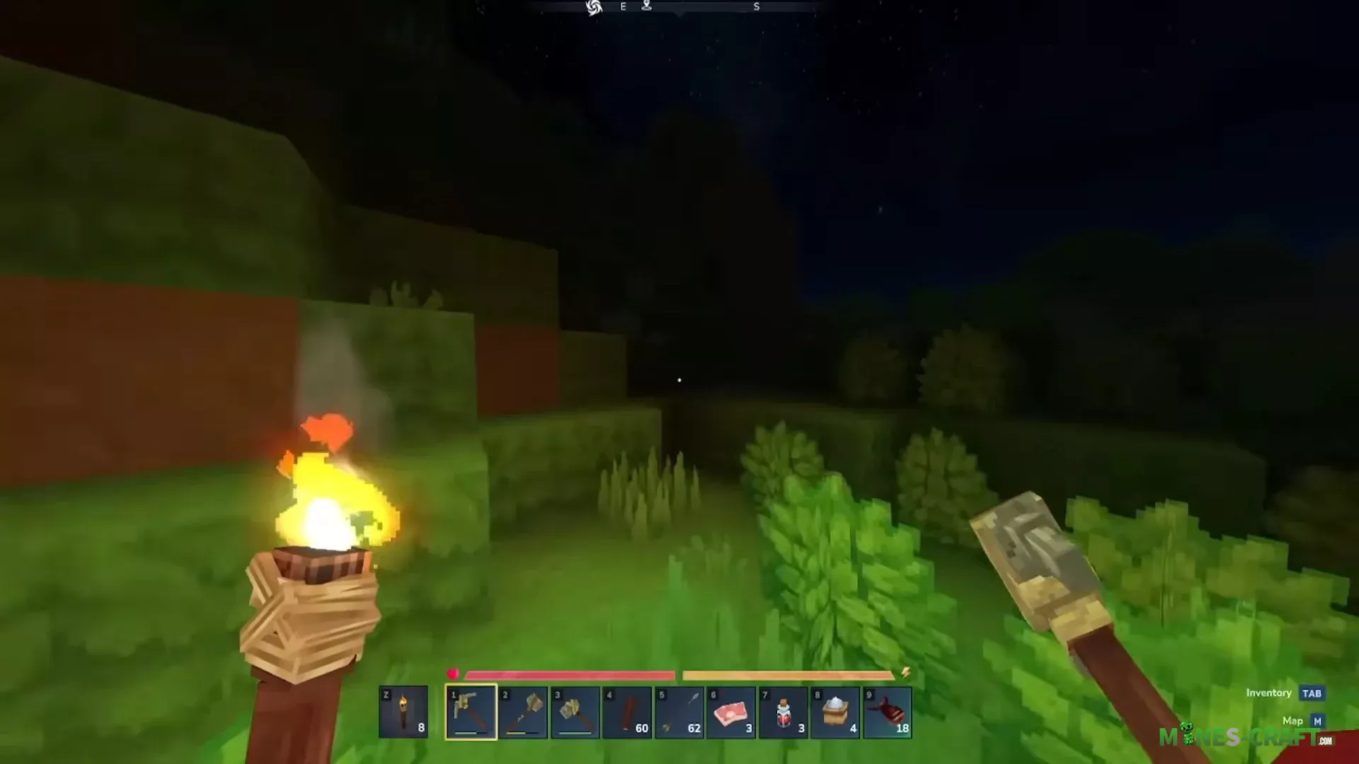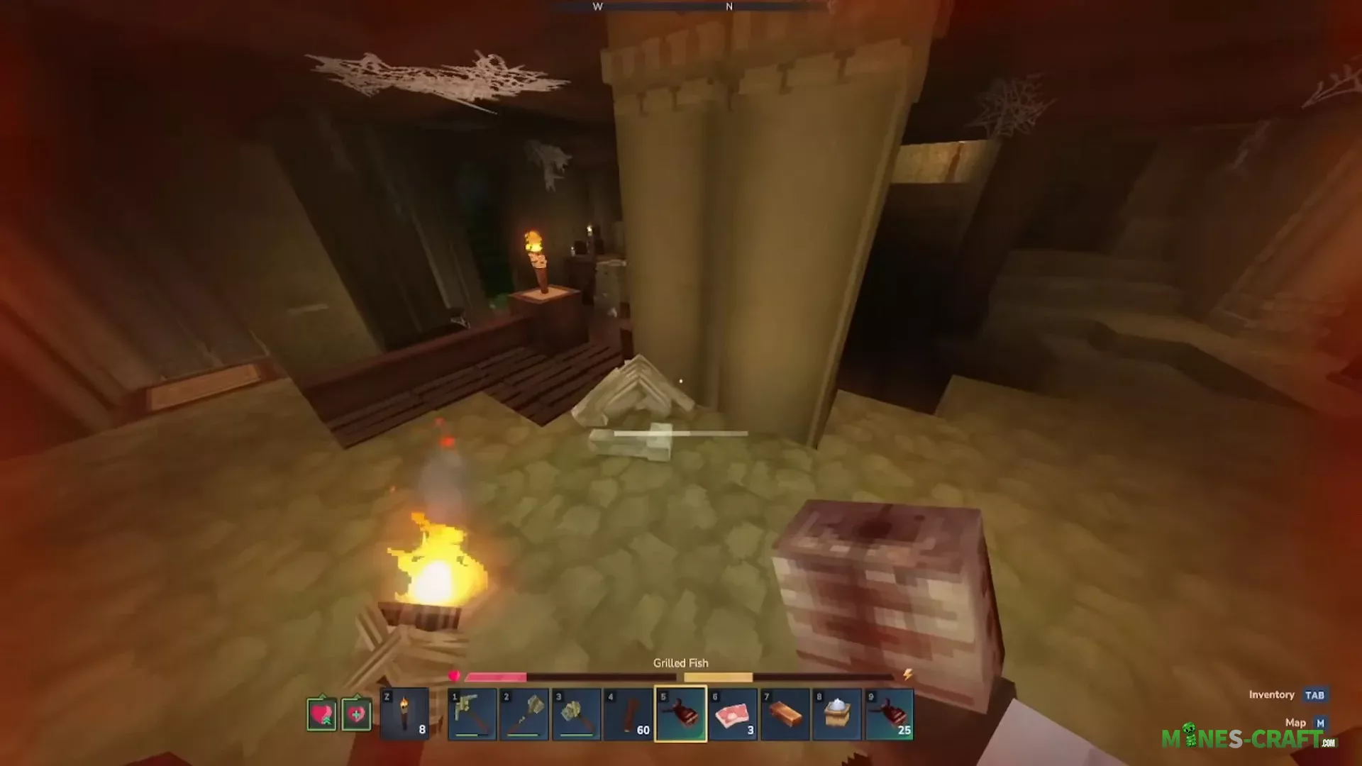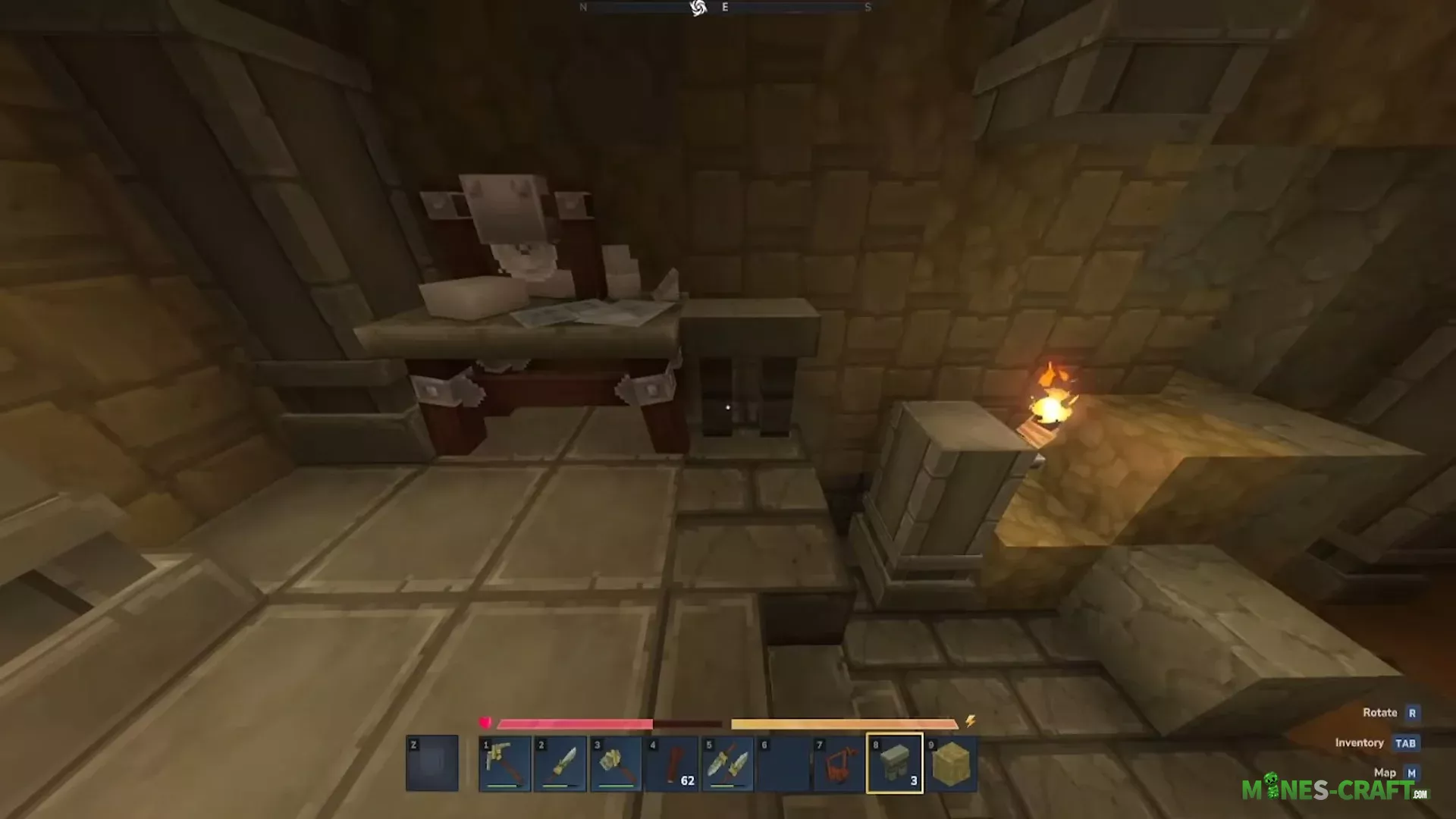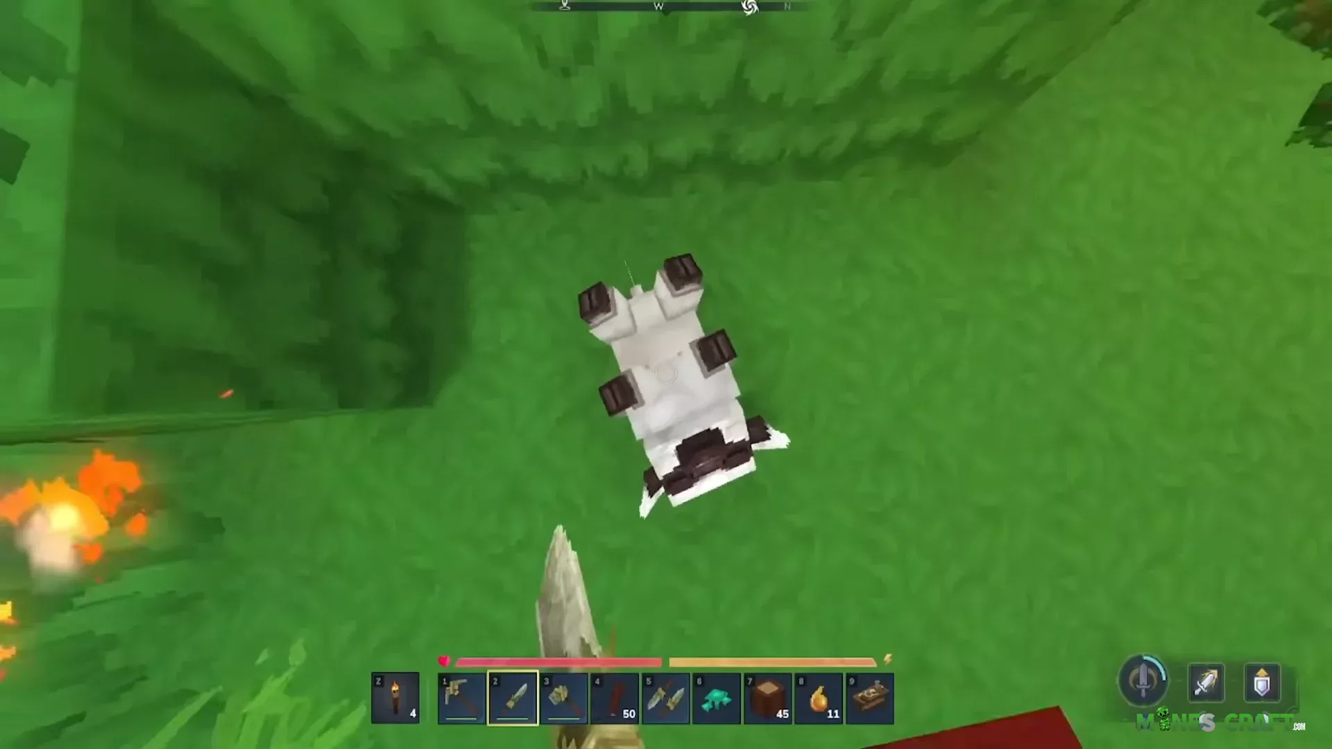 Creatures range from peaceful animals to skeletons and unknown monsters. Combat requires skillful management of stamina, choice of distance and timely use of food and potions. In case of death, the game shows the place of death allowing you to return and collect lost items, similar to mods for Bedrock.