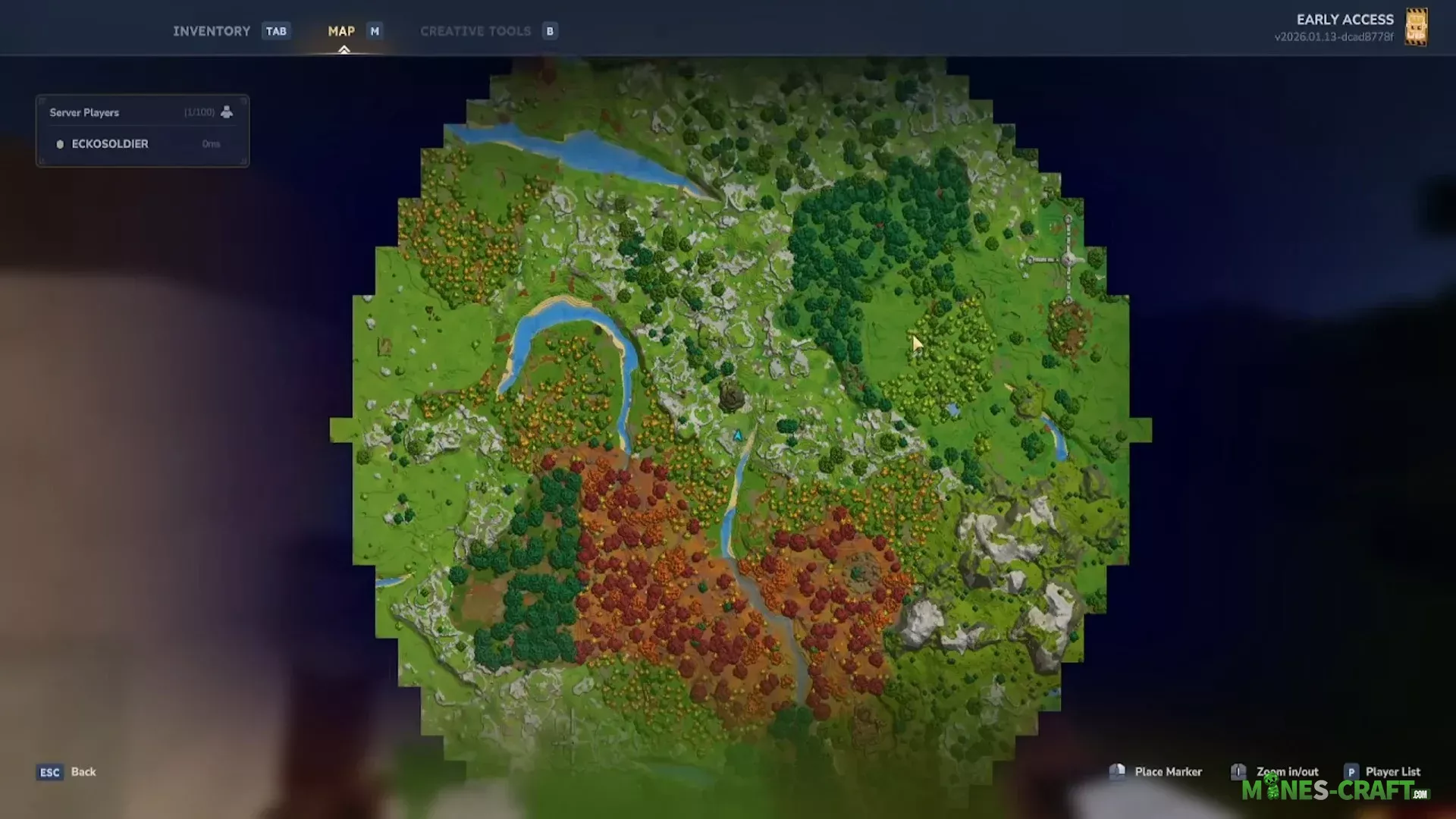 Early access includes exploration mode, which is Hytale’s main survival format. When creating a world, you can change the PvP, damage, and day/night cycle settings, but the default settings already seem well balanced. The map immediatly shows your spawn point, and the surrounding landscape offers several directions for exploration.