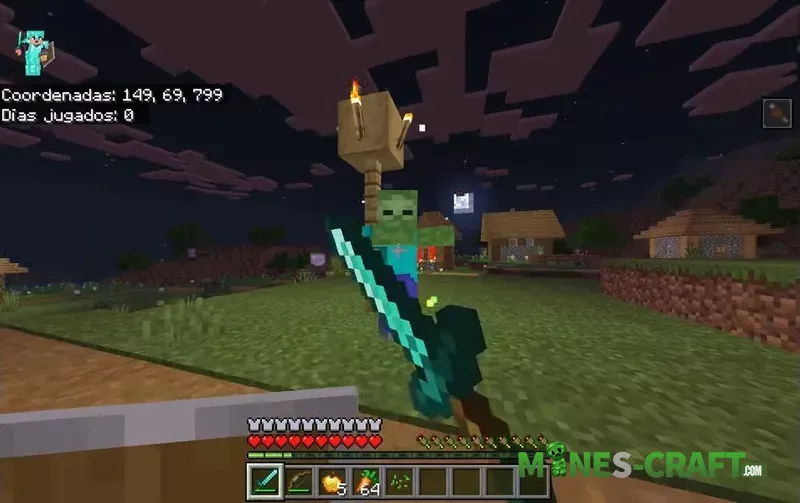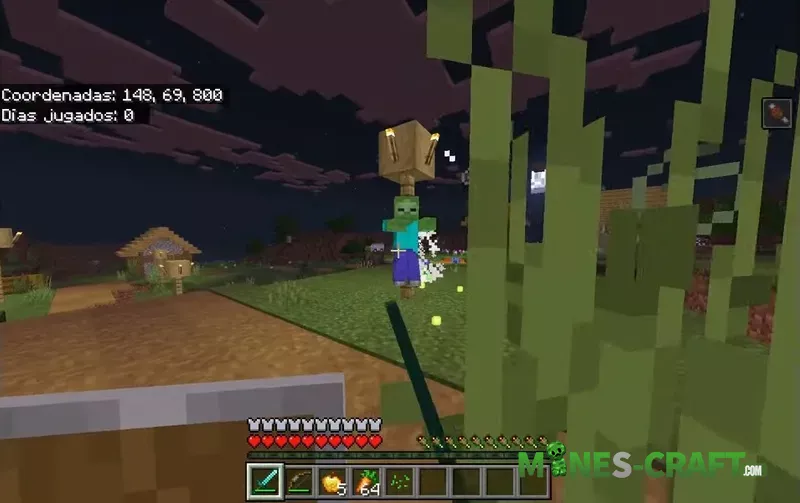 The main idea of the addon is mass enemy generation. Zombies, skeletons, spiders, and other creatures appear not one by one, but in waves, from 10 to 13 mobs in the standard version and up to 20 in the expanded Massive Horde. Important note: mobs can now spawn even at high light levels, so old habits like placing torches no longer work.