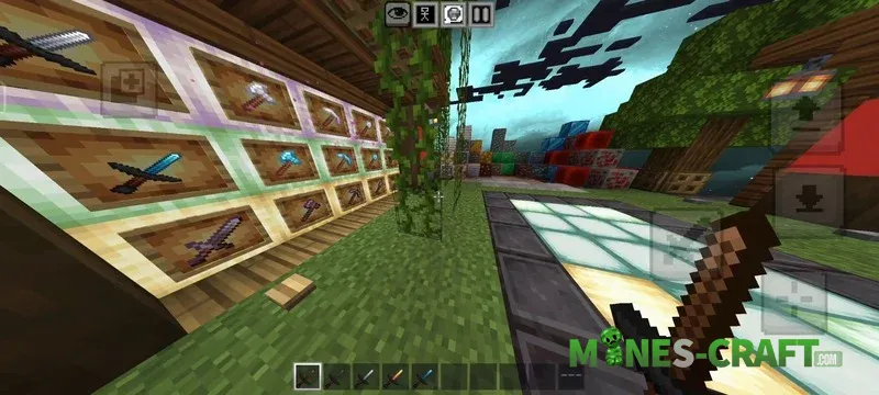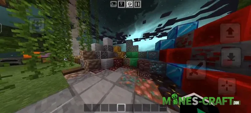 Now about optimization. Among the available modes there’s a separate FPS subpack. It’s needed to prevent the game from lagging in multiplayer. The build includes a preset that replaces the standard sky with a more realistic one. There are settings for both the daytime cycle with soft lighting and for nighttime. Overall if you have low FPS in Bedrock, you should definetly get the FPS booster subpack.