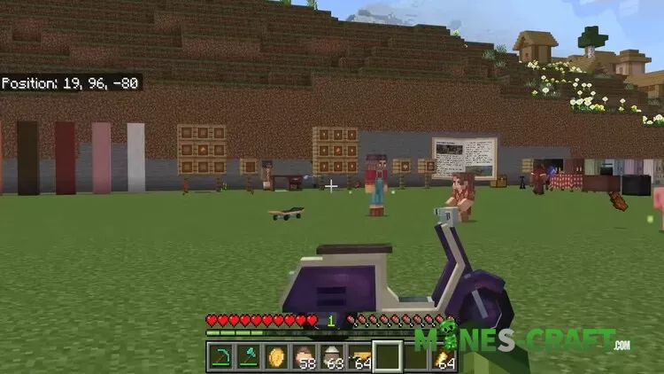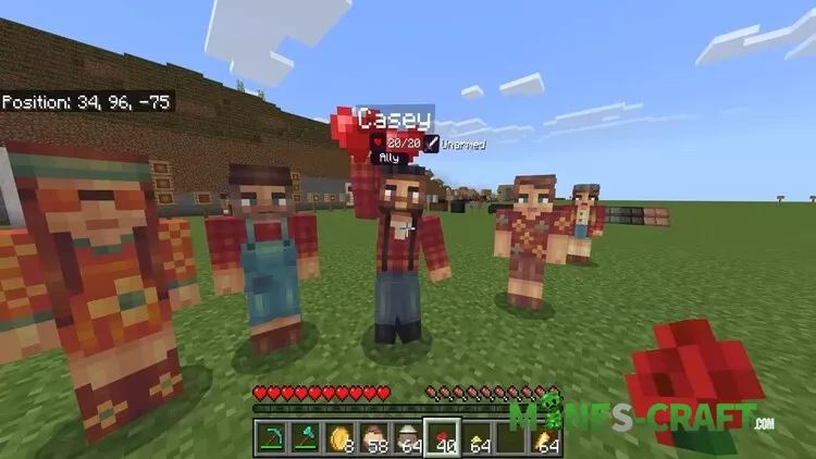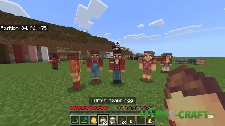 - NPC System: Citizens can follow you, sit, fight monsters with given weapons and even ride vehicles. Traders exchange coins for food, dyes and crafting materials.
