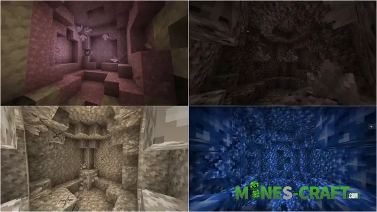 Geodes Plus turns ore hunting into cave sightseeing. The addon places twelve new geodes across the Overworld and the Nether. Each one matches a vanilla mineral and spawns in the same height range as amethyst, so you discover them during normal mining.