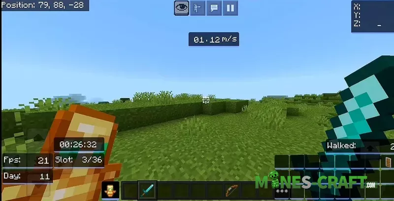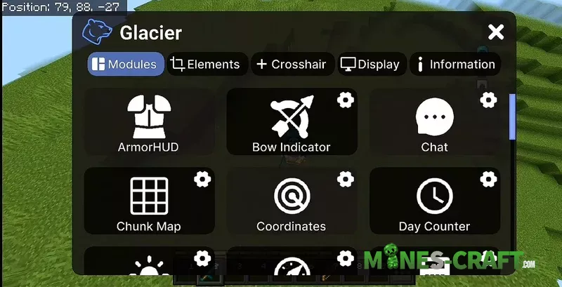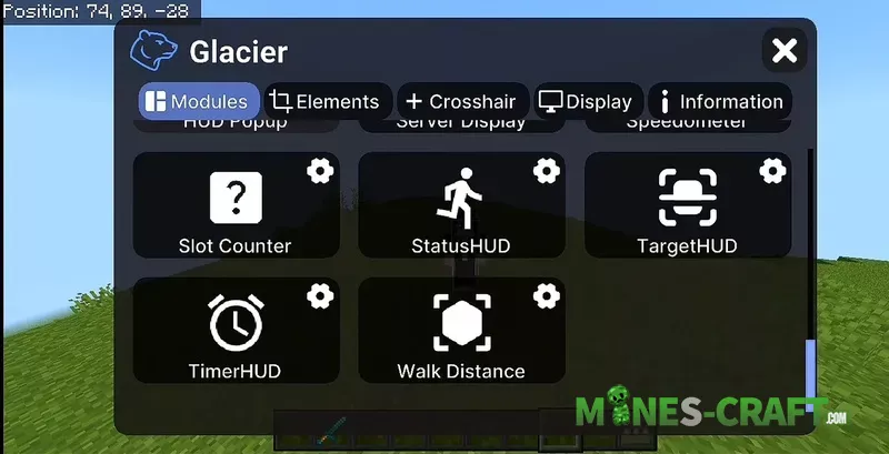 The main feature of Glacier Client is the convenient draggable GUI, which lets you move all HUD elements on the screen how you like so you can customize everything your way. Unlike other clients for PEMinecraft, this one really gives you the ability to fine-tune the UI.