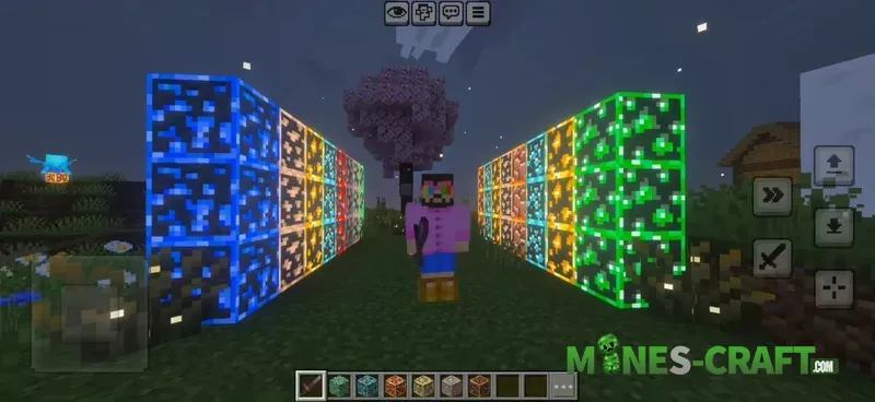 The pack adds illuminated ores with outlines to Minecraft: Bedrock, making them easily visible even in the darkest mines. Perfect for quickly finding resources.