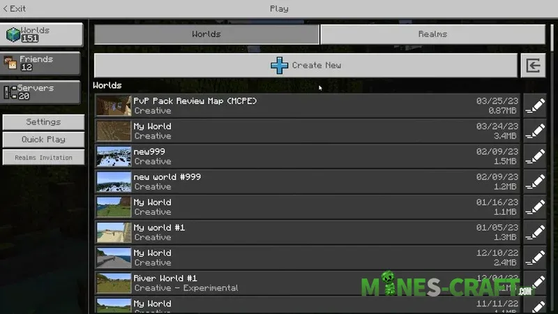 - Redesigned main menu: Worlds / Friends / Servers tabs
