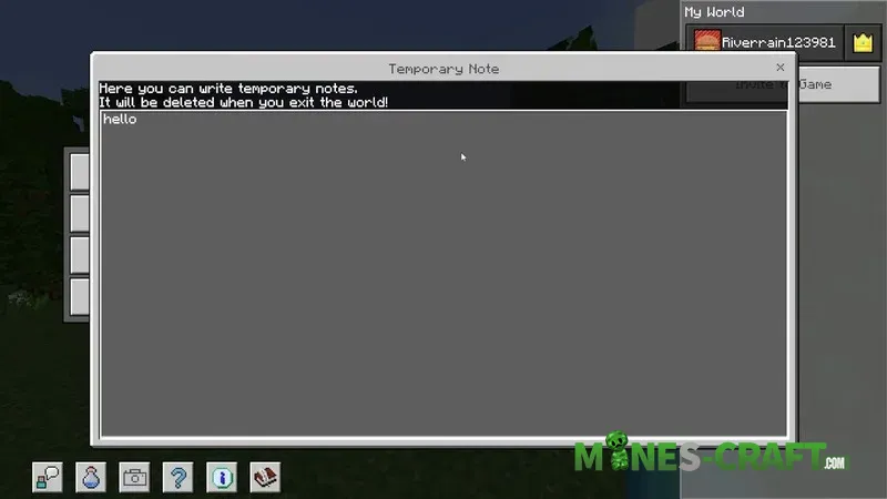 - Temporary note in the pause menu (resets when exiting)
