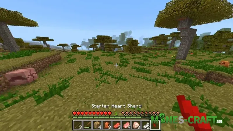 Earning hearts is tied to hunting and gathering resources. After defeating any creature a heart shard may be left behind. Additionally at depths ranging from -1 to -60 rare ore containing shards is generated. Once you’ve collected enough of them you can craft your first Starter Heart.