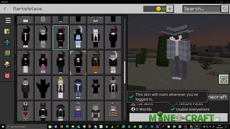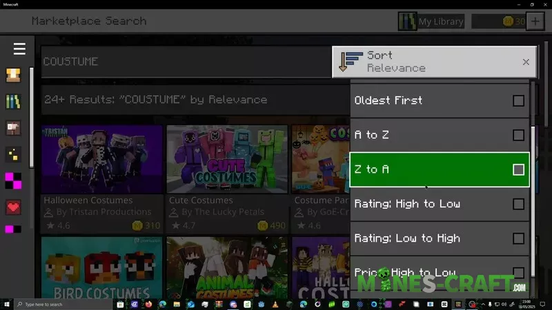 - First, launch Minecraft: BE on Windows and wait for it to load. Open the Marketplace and enter costume in the search bar.