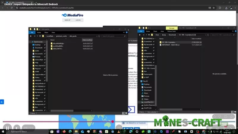 - Now follow the link to Mediafire, where you can download a free set of cosmetic items, including a full set of “sweaty” skins. Download the archive and extract it. Then you can close Minecraft and move the downloaded skin pack to the skin_packs folder you opened earlier.