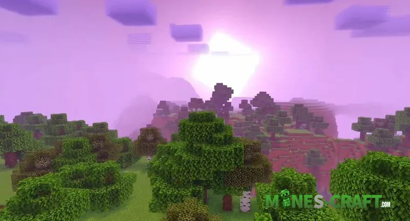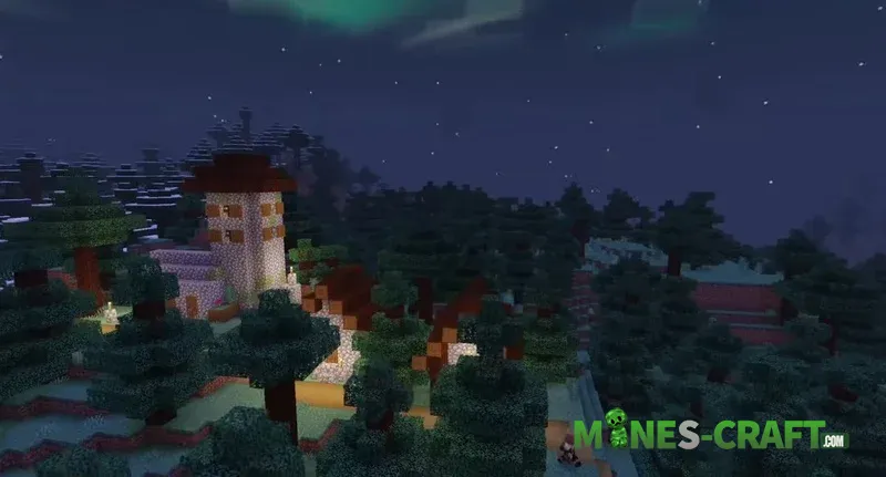 Sky effects: During the day, the sun casts a sun bloom, and at sunset rich pink and purple tones appear. At night, you can see shooting stars and the northern lights in the sky. If you prefer darkness you can switch to night vision or disable the aurora in the settings.