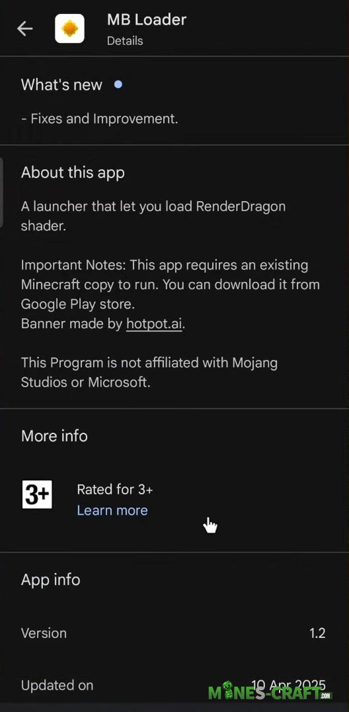 - Available on Google Play and free. You need a purchased copy of Minecraft to run it. Not affiliated with Mojang.