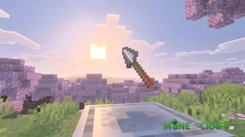 Another major addition of Bedrock Edition 1.22 is a new weapon: spears. The spear can jab or perform a charge attack, allowing jousting. Its damage scales with velocity: the faster you move, the more damage it deals. Spears can be crafted in copper, iron, gold, diamond, and netherite tiers. Zombies can also wield them, and in some cases, a zombie on a zombie horse may hold a spear.