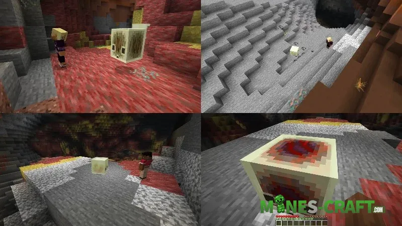 Launch Mechanics – The cube’s range and flight height depend on the damage of the item you hit it with. A fist (1 damage) will only nudge it slightly while a netherite axe (10 damage) will deliver the strongest blow.