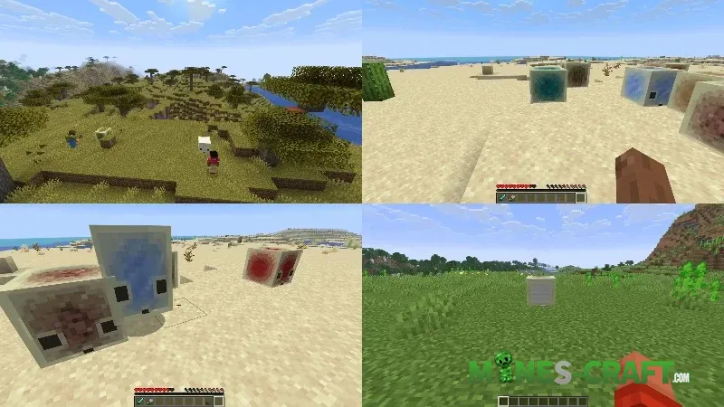 • Ice block. Makes the cube’s surface slippery. It will slide across grass or stone.