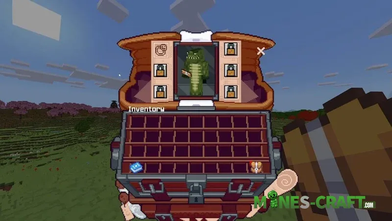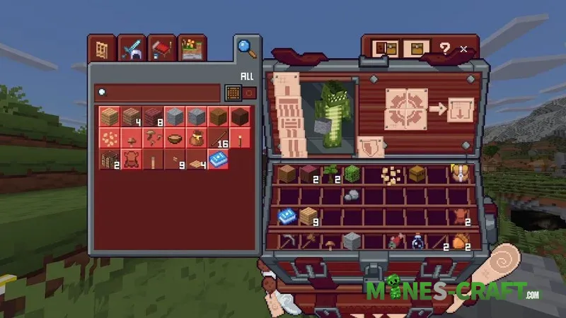 Bedrock Reimagined welcomes you with a new RPG inventory. Immediately after spawning, you’ll recieve a guidebook and a bag for accesories. In the interface, you’ll notice that the hunger bar also includes a thirst gauge. So if you decide to run thru the desert, you’ll get thirsty very quickly. Then you’ll have to look for coconuts and craft water skins. That’s just the introduction-it gets more intresting from here.