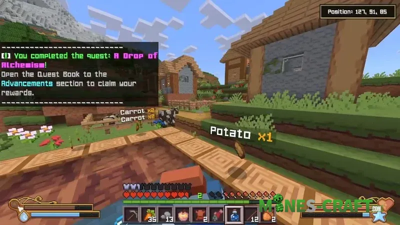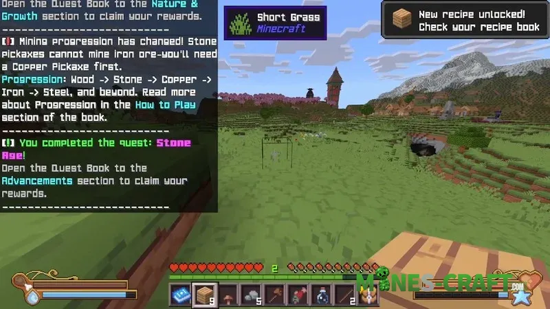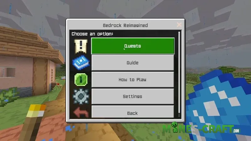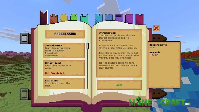 The gameplay in Bedrock Reimagined is centered around quests and achievments. The game rewards you with experience and prizes for simple things like harvesting your first tree or stone. You follow a progression path that gradually leads you to the main challanges in the mod.