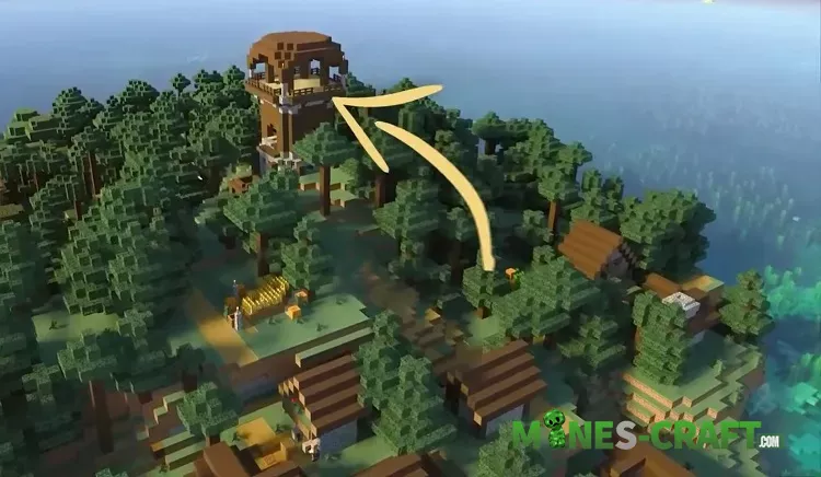 Cozy spruce vibes with steady action. Start in a spruce village, pass a pillager outpost, then spot a witch hut in the swamp. Deeper in, a ruined portal floats over open water. Sail on to a second island with a shipwreck and another spruce village. It’s calm, yet never empty.