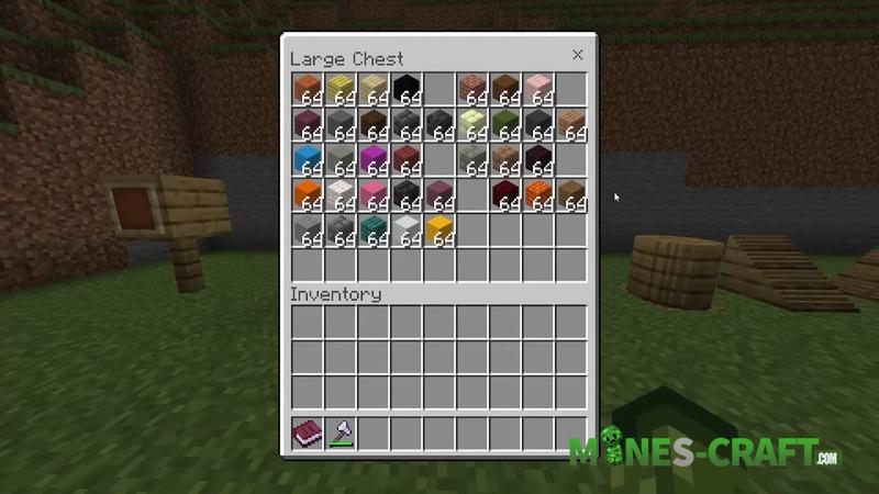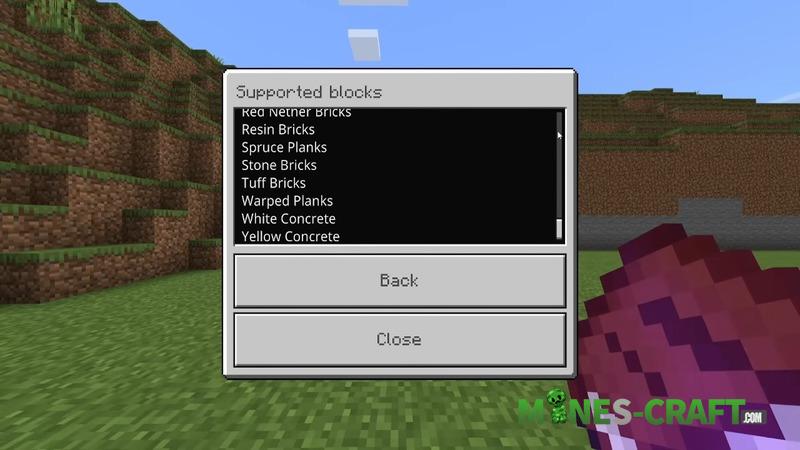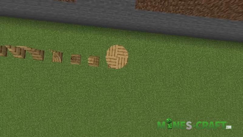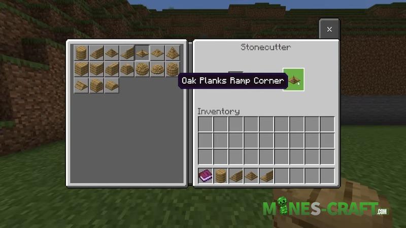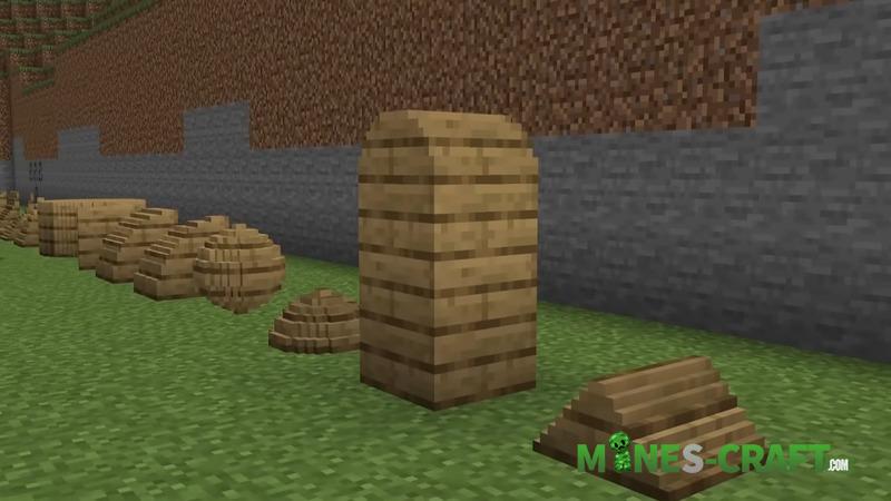 The add-on does not work with every block in the game. Basic building blocks are supported, such as oak planks, concrete, cobblestone, and mossy stone blocks. There are also variations for bamboo and cherry. However, the number of supported blocks is limited, since each shape requires a separate model and texture.