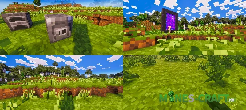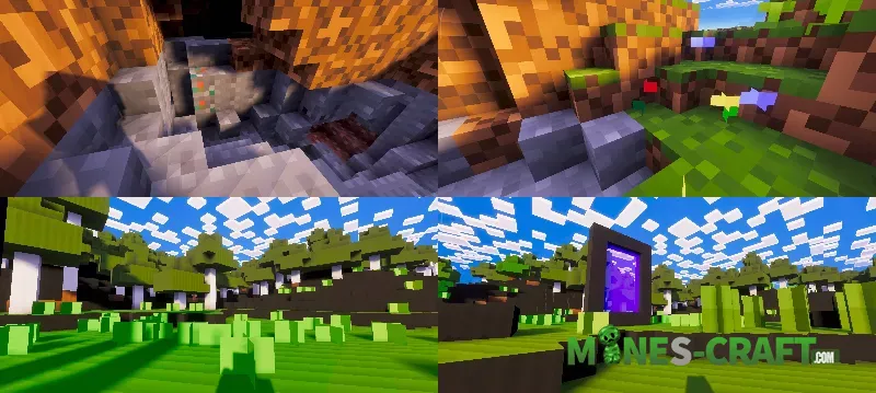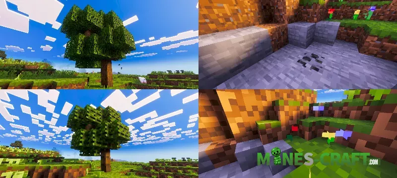 MultiResolutions: Bedrock Texture Pack allows you to change the texture resolution from the standard 16×16 to a minimalist 1×1, and this approach not only improves performance but also completely changes the entire style, especially if you’ve always played at 16×16. Familiar blocks look diffrent, and details become unusually simple and clear just by changing the resolution to several orders of magnitude lower.