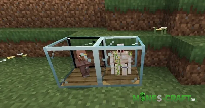 For those who prefer automated farms, the add-on includes blocks for working with golems. Installing a Killing Block in combination with a golem case allows you to set up automatic iron collection. This system easily connects to chutes and chests, creating a resource conveyor belt. However keep in mind that accidentally destroying the block will return the mob to its normal state.
