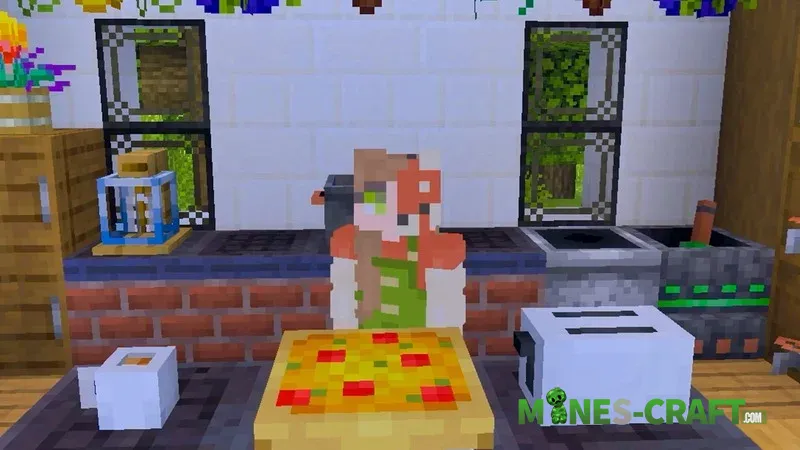 Pizza and burgers can be beautifully arranged on plates, and soups served in bowls placed on the table. In addition to food, Niel’s Culinary Bedrock features new creatures-farm golem-that can harvest crops and help you on the farm.