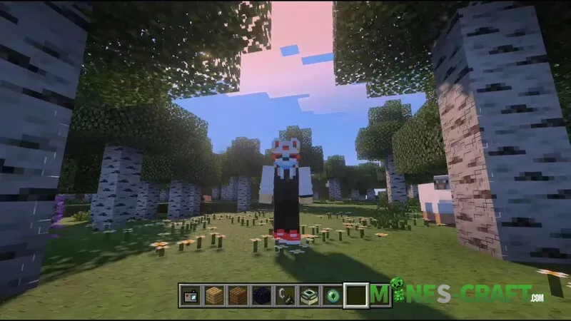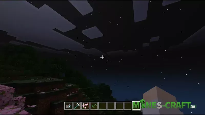 In the evening, everything is calm-a familiar sunset without unnecessary contrasts. At night, the standard Minecraft sky remains: no stars, no glows or auroras, just the soft light of the moon.