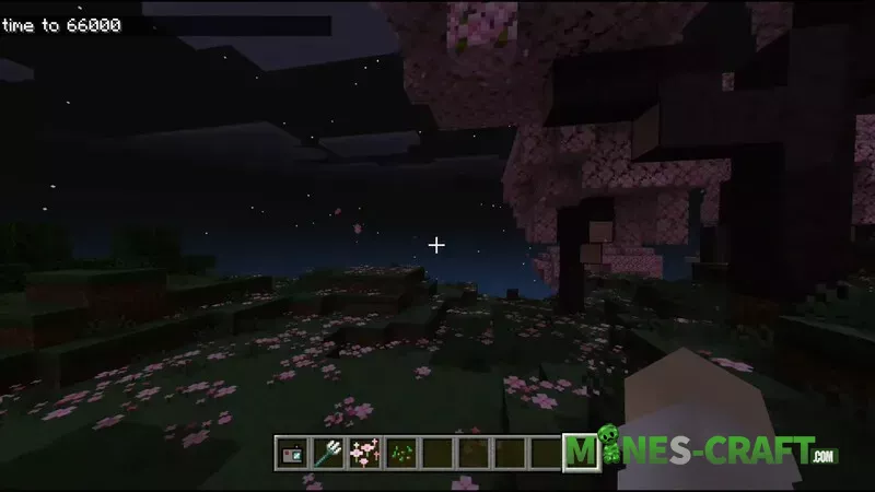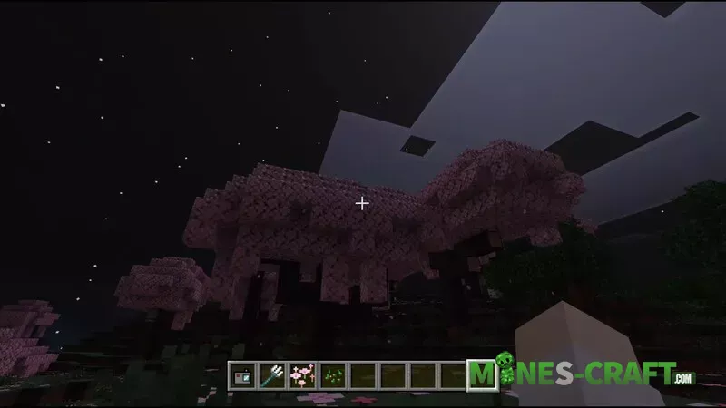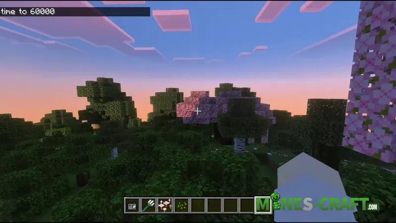 The settings remain the same as before. The Nova FX shader pack is already installed. The morning looks especially beautiful-in the Cherry Blossom biome, the clouds take on a pinkish hue, and the textures become slightly more voluminous due to a slight 3D effect.