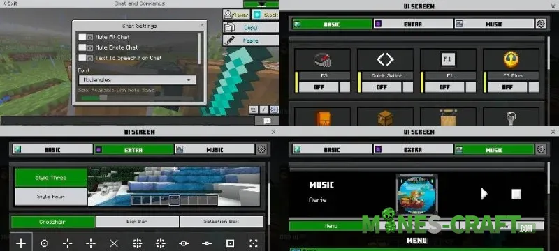 • Font selection (including Mojangles) and chat message scaling.